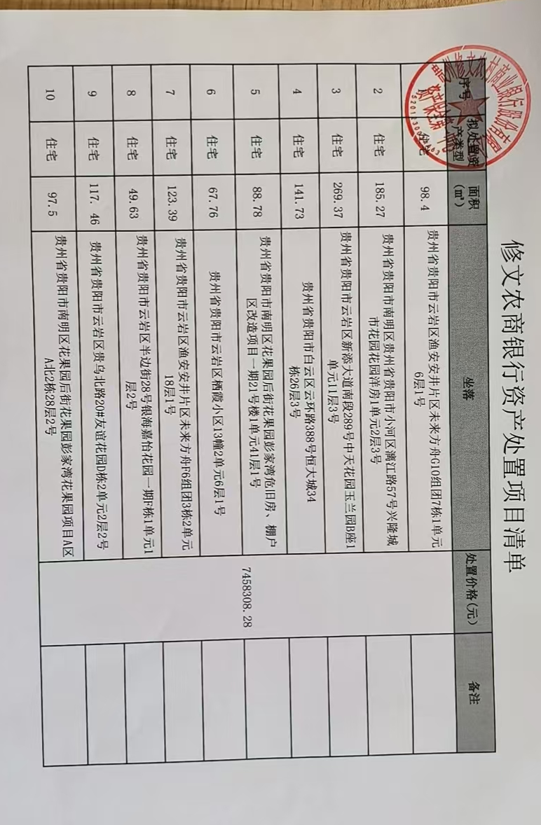 修文農村商業(yè)銀行持有的10處抵債資產整體轉讓項目